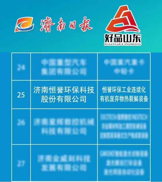 3月2日,山東省召開“好品山東”建設(shè)情況新聞發(fā)布會,公布第一批“好品山東”品牌名單,濟南恒譽環(huán)??萍脊煞萦邢薰緫{借“工業(yè)連續(xù)化有機廢棄物熱裂解裝備”入選。