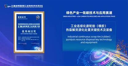 2024年9月公司產(chǎn)品“工業(yè)連續(xù)化廢輪胎(橡膠)熱裂解資源化處置關(guān)鍵技術(shù)及裝備”榮獲國家工信部國際經(jīng)濟技術(shù)合作中心主辦的 2024 金磚國家工業(yè)創(chuàng)新大賽“國際優(yōu)秀獎”。
